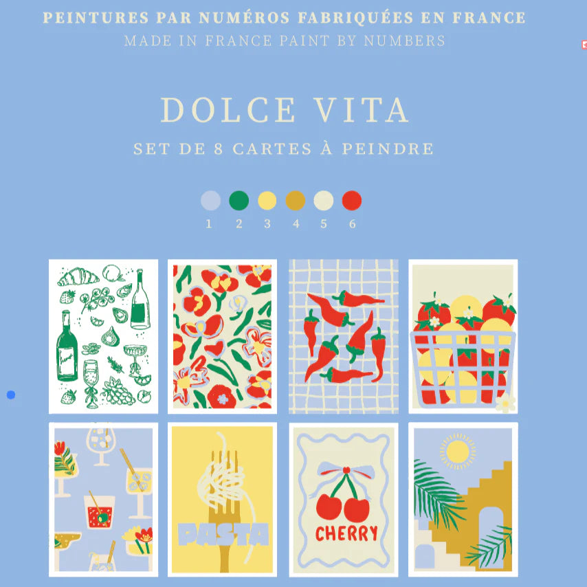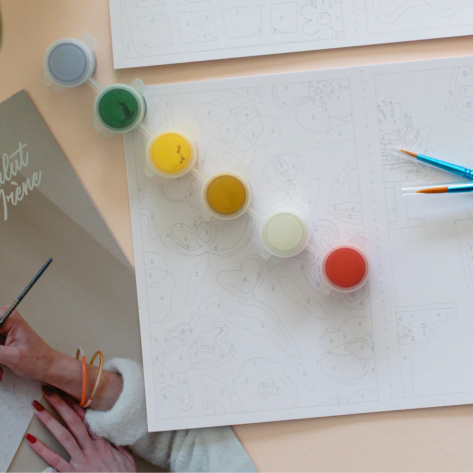 - 8 illustrations numérotées à peindre (format carte postale 10,5 x 14,85 cm)