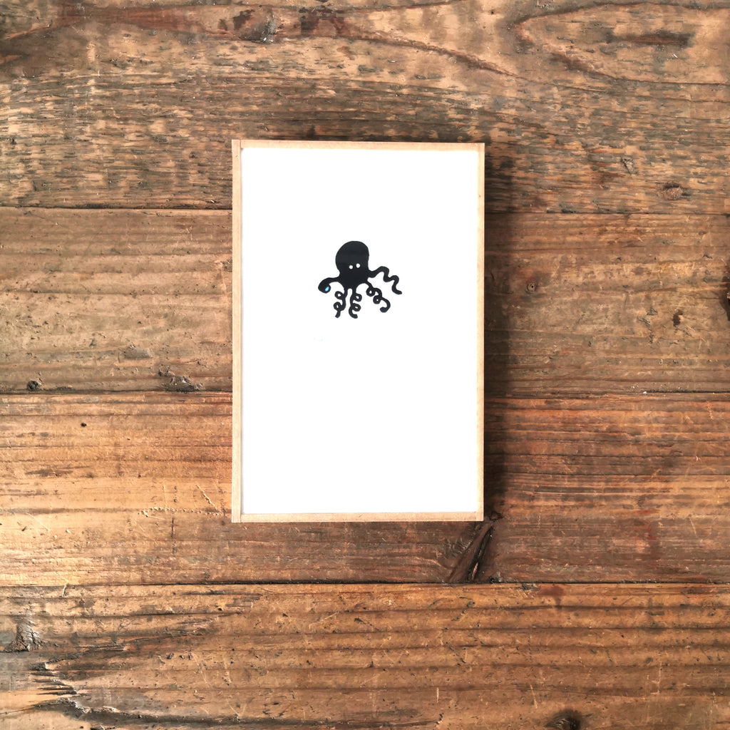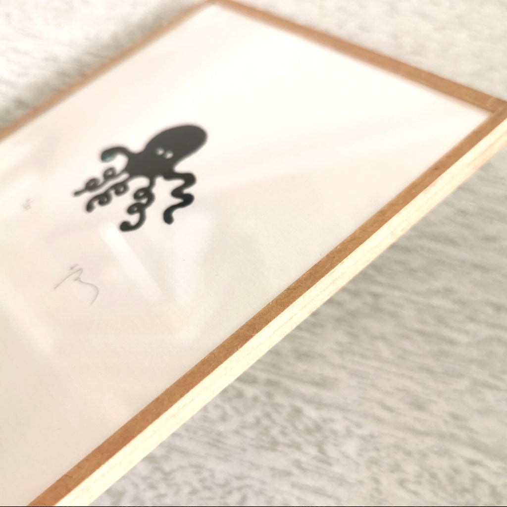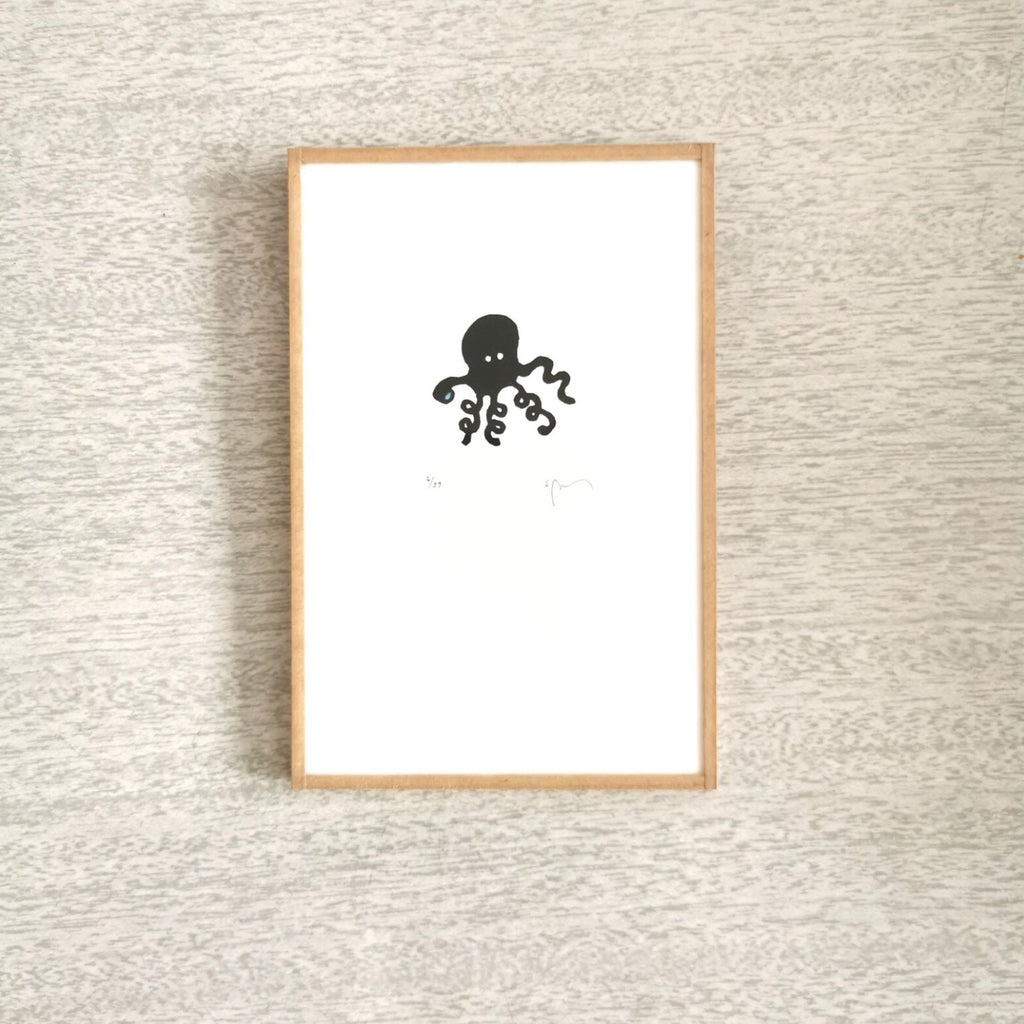 Son travail est minimaliste, la plupart du temps en noir et blanc. Mais il arrive parfois qu’une touche de couleur vienne réveiller l’ensemble (papier ancien, peinture, collage…). Ces gravures sont tirées en petite série et sont toutes réalisées à la main et encadrées par ses soins dans son atelier à Brest.