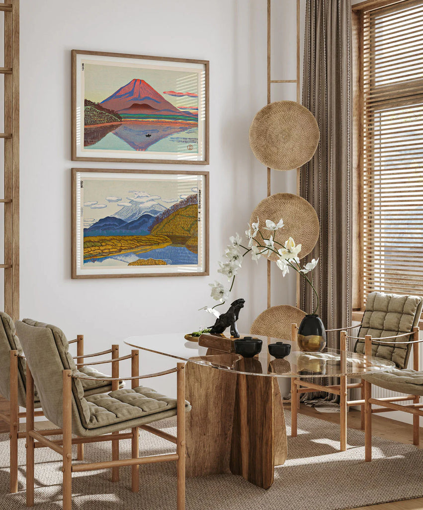 Reproduction d'une estampe ancienne de Koizumi Kishio (1893-1945), délicatement restaurée numériquement, dans le respect de ses couleurs et détails d'origine, et imprimée sur un papier mat Hahnemühle avec des encres japonaises dans l'atelier de la marque, dans la campagne de Copenhague, au Danemark.