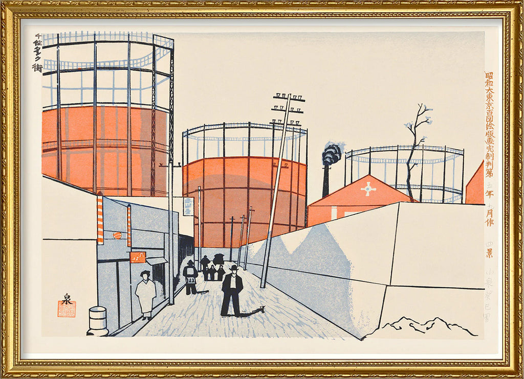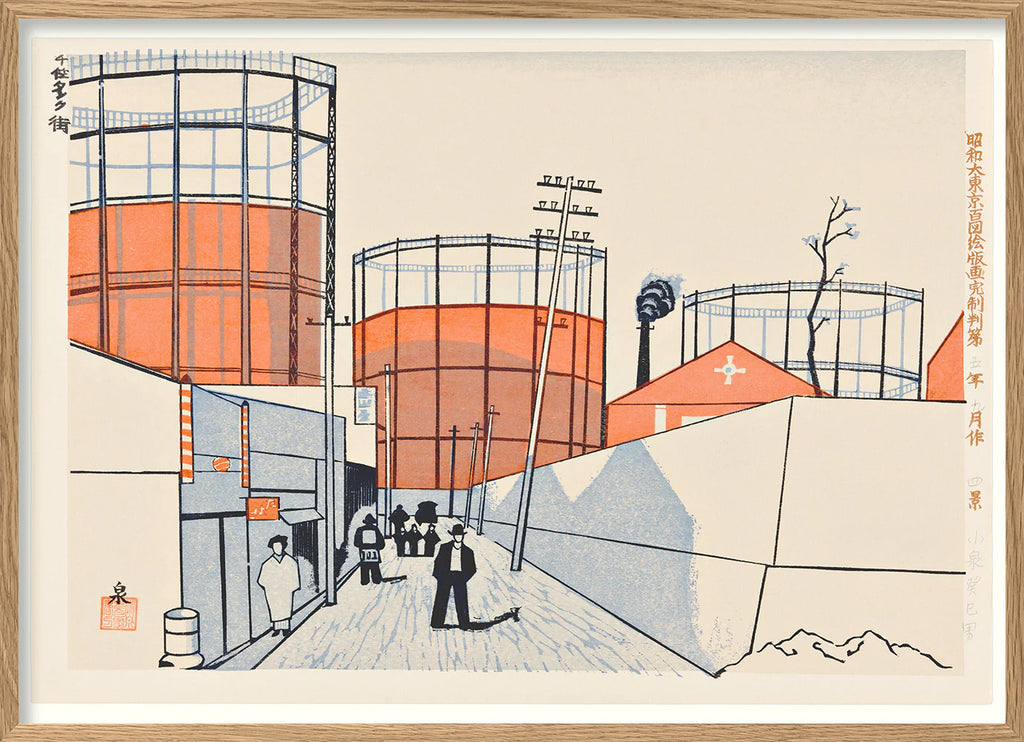 Reproduction d'une estampe ancienne de Koizumi Kishio (1893-1945), délicatement restaurée numériquement, dans le respect de ses couleurs et détails d'origine, et imprimée sur un papier mat Hahnemühle avec des encres japonaises dans l'atelier de la marque, dans la campagne de Copenhague, au Danemark.