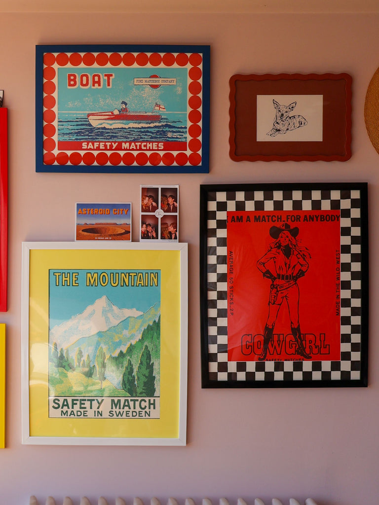 L'art des boîtes d'allumettes est une joyeuse expression de créativité en miniature. Cette collection d'estampes rend un vibrant hommage à ces petits chefs-d'œuvre. Tout au long du XXe siècle, les boîtes d'allumettes de poche ont servi de supports à certains des artistes et designers les plus talentueux au monde. Pour vous aider à créer votre propre galerie de boîtes d'allumettes, chaque estampe est présentée dans un passe-partout coloré et réutilisable – idéal pour un encadrement ludique et réfléchi.