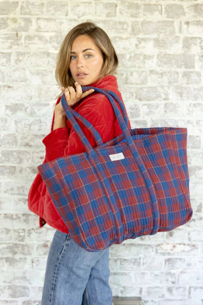Grand cabas designé avec le tissu exclusif imaginé par les créatrices de la marque et sublimé par la technique du blockprint.