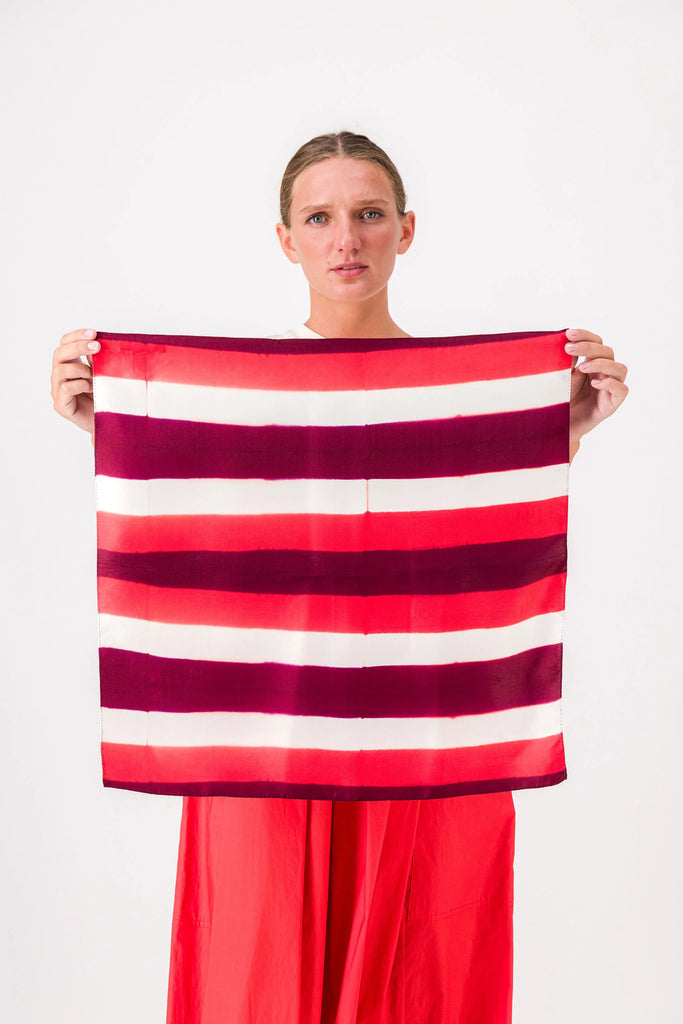 PETITE FREQUENCE, un bandana en soie qui utilise un procédé de teinture artisanal pour créer ces rayures.