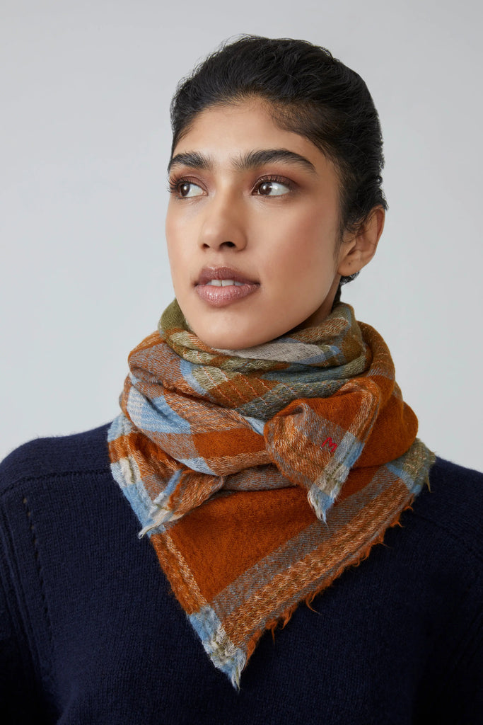 Le foulard N°752 arbore des gros carreaux distinctifs, rappelant les tissus traditionnels porteurs d’histoire.