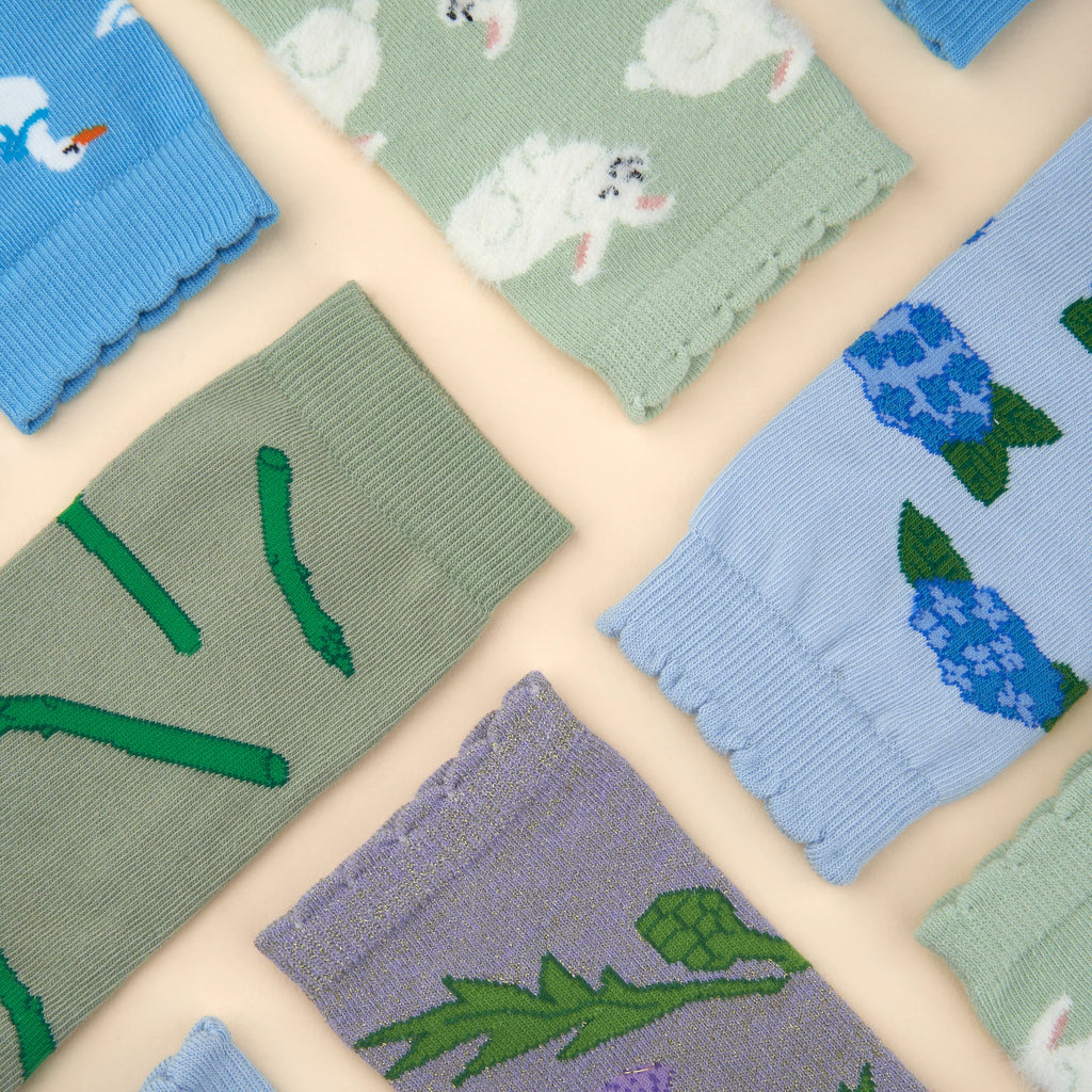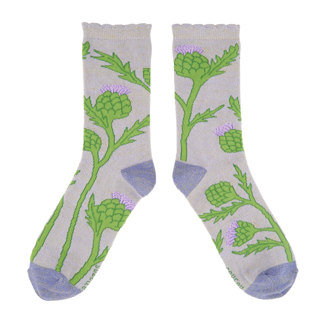Juliette, fondatrice de Coucou Suzette, s’est surpassée pour le design de ces chaussettes artichauts ! De belles plantes qui grimpent le long de nos chevilles, des artichauts en fleur pour notre plus grand bonheur, et un max de paillettes pour plus de fête.