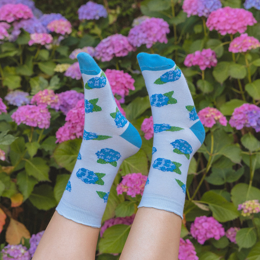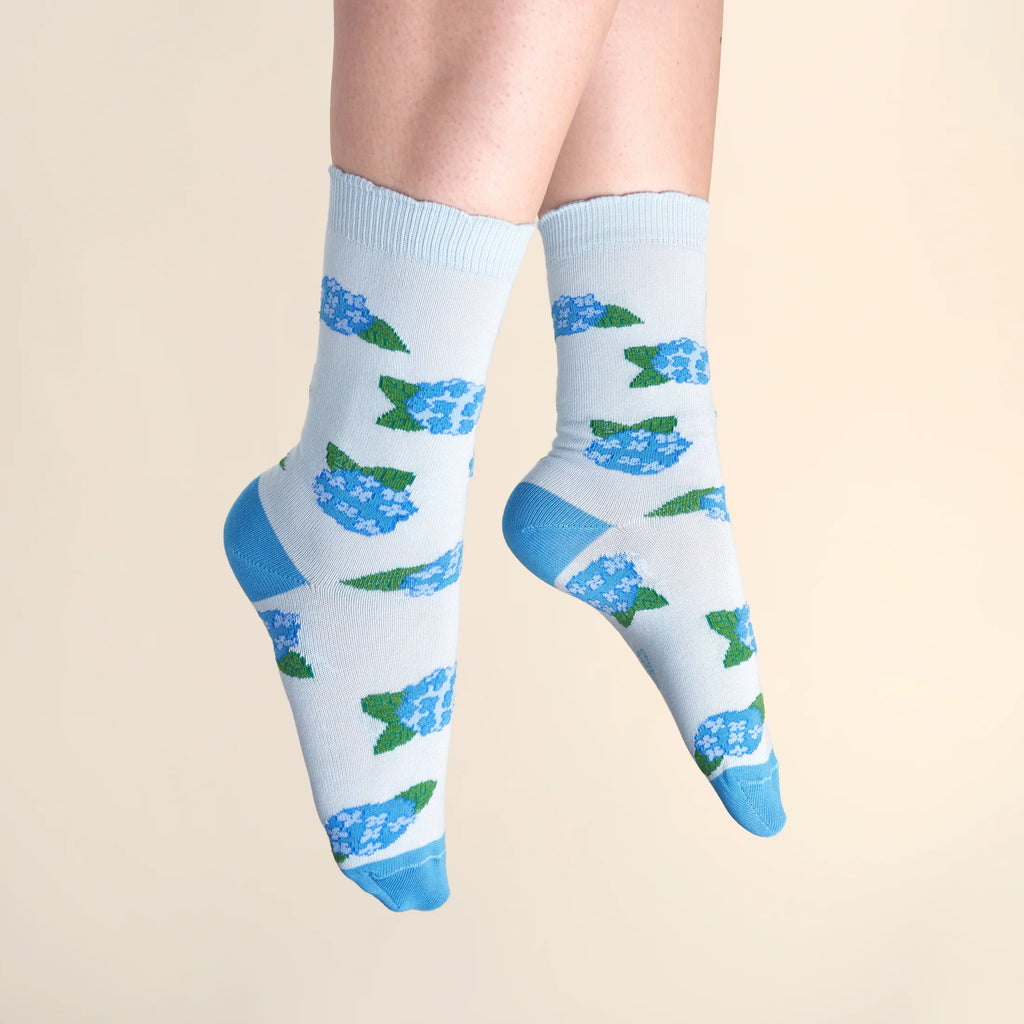 Qui a dit que les hortensias étaient des fleurs de mamie ? On remet au goût du jour ces petites chéries avec nos chaussettes à motif. On craque pour leur côté rétro romantique, leur camaïeu de bleus, et leurs petites fronces tout autour de nos chevilles.