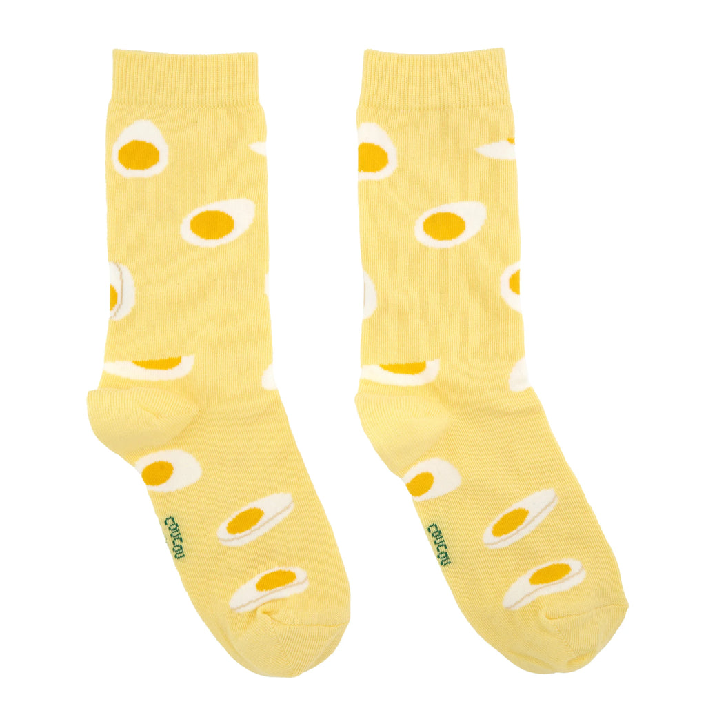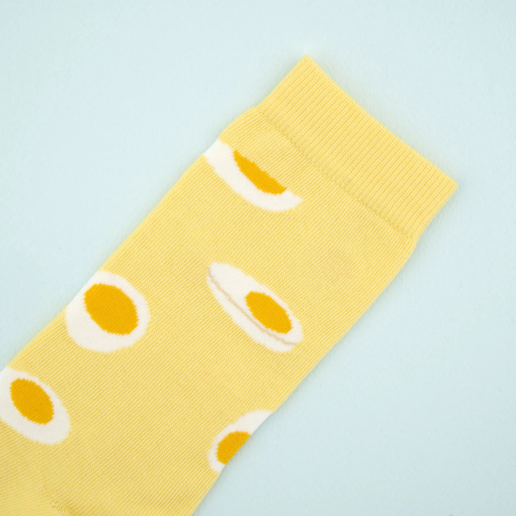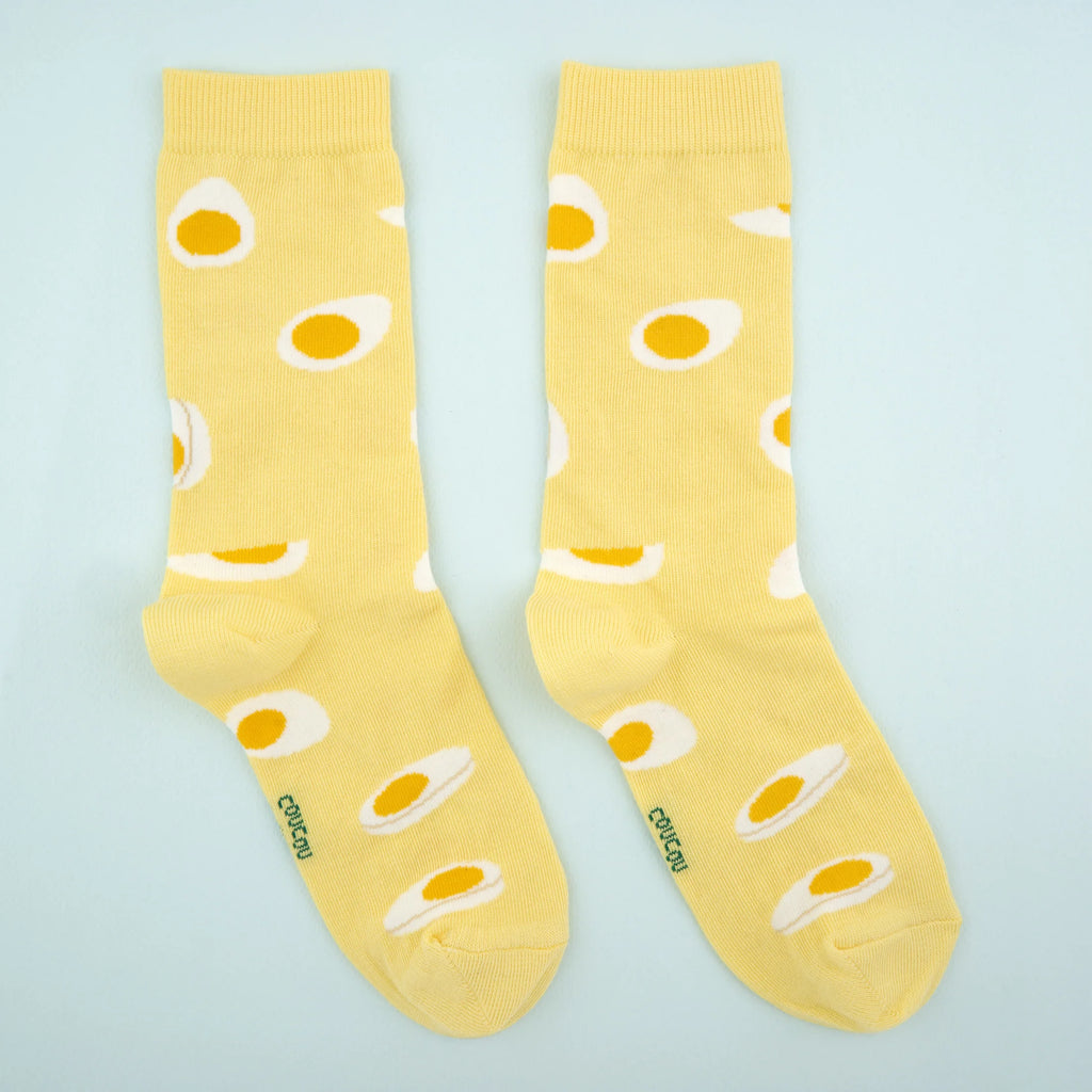 Pour un peu de soleil à nos pieds, on opte pour ces chaussettes jaunes pastel au motif d’œuf ! De beaux œufs durs cuits à point, qui viennent s’installer dans nos baskets pour nous accompagner à nos piques-niques et autres sorties champêtres. Un accessoire mixte qui trouve sa place dans tous les tiroirs à chaussettes.