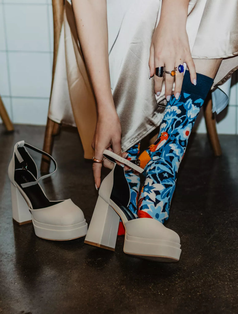 Une collection de chaussettes hautes aux couleurs juteuses et aux motifs amusants qui sont faites pour s'adapter parfaitement à vos pieds et égayer votre journée !
