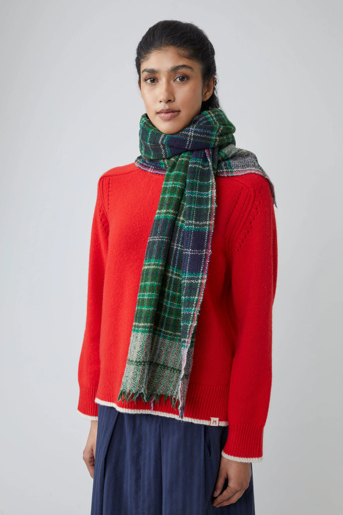 L’écharpe N°803 rend hommage au motif tartan emblématique, symbole d’une élégance classique revisitée avec subtilité.