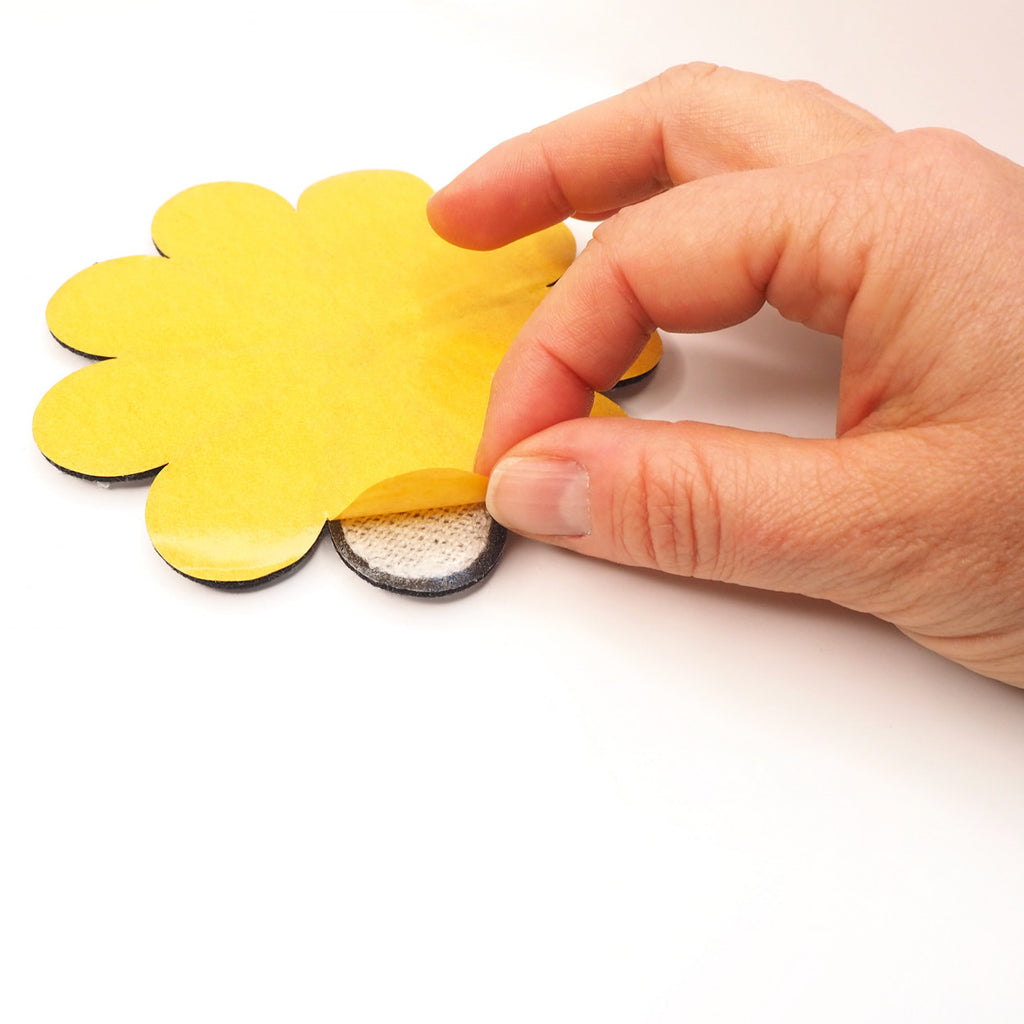 Ôtez l'opercule, jetez-le dans la poubelle adaptée, placez votre broderie à l'endroit voulu, appuyez fort.