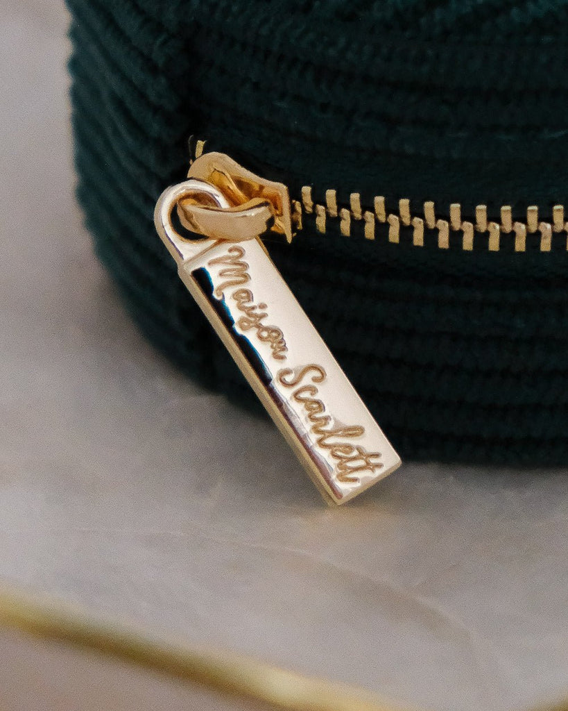 - Fermeture éclair en acier doré, gravée Maison Scarlett pour plus d'élégance