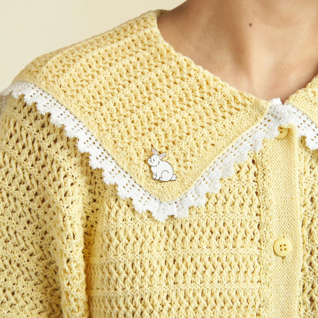 Les fans de lapin ne résisteront pas à cette adorable boule de poils ! Ce pin’s original est prêt à bondir fièrement sur les cols de veste pour y ajouter une touche de légèreté. On craque pour le pompon qui lui sert de postérieur et sa petit frimousse satisfaite.