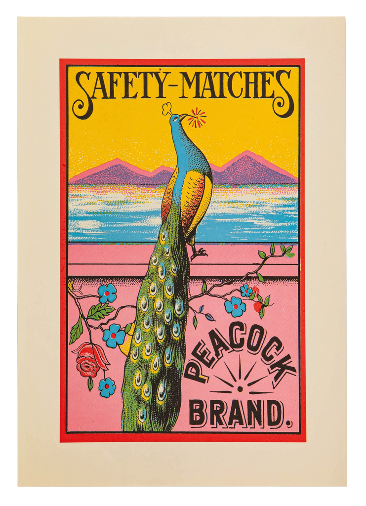 Illustration imprimée en tons directs s'inspirant d'une ancienne étiquette de boîte d'allumettes indienne.