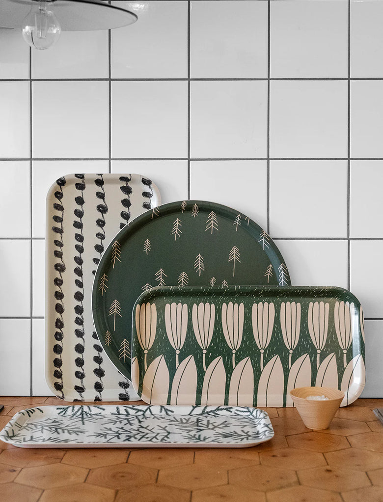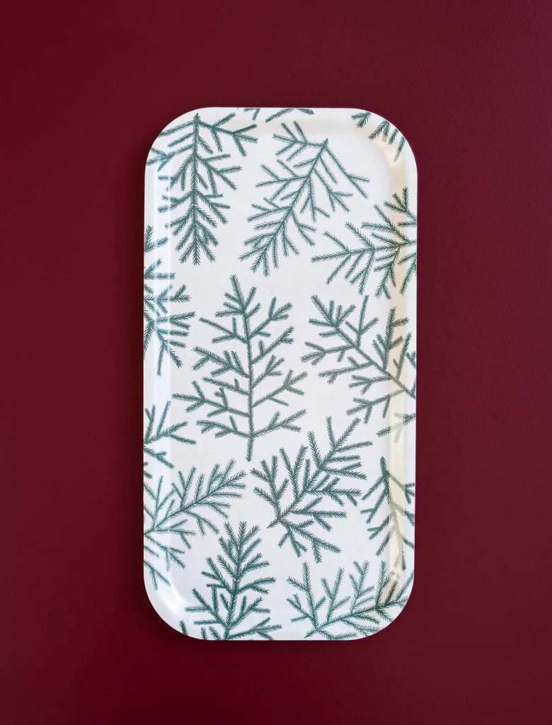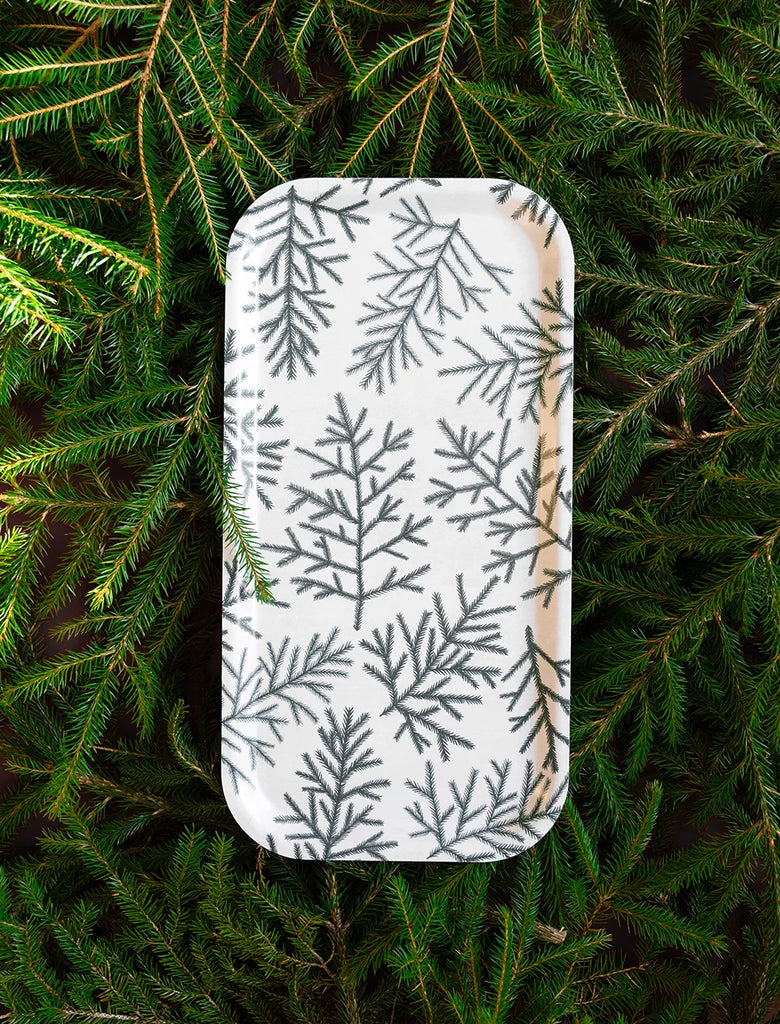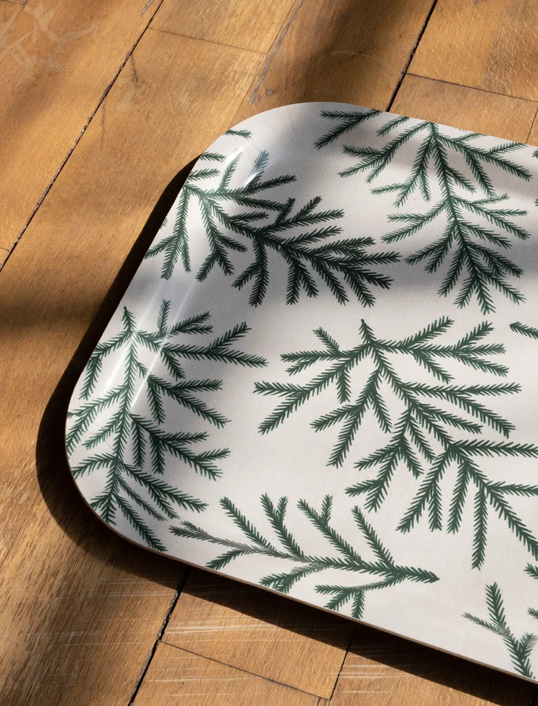 Un magnifique plateau au motif de branches de sapin d'hiver parfait pour votre décoration de saison !