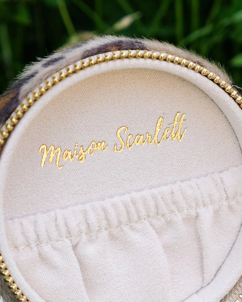 Yvonne en velours léopard est la boîte à bijoux de voyage idéale et deviendra sans nul doute l’alliée de toutes vos aventures ! C'est un petit format très fonctionnel pour vos activités quotidiennes. Elle est mignonne, compacte et se glisse aussi bien dans un sac à main que dans une valise.