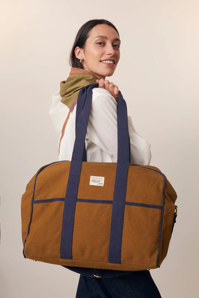Ce grand sac en coton est idéal pour partir le temps d'un week-end. Sa anse réglable vous permet de l'enfiler sur l'épaule, même par dessus un manteau. On apporte avec soi ses essentiels : vêtements, livres, foulards. Tout pour passer un merveilleux séjour.