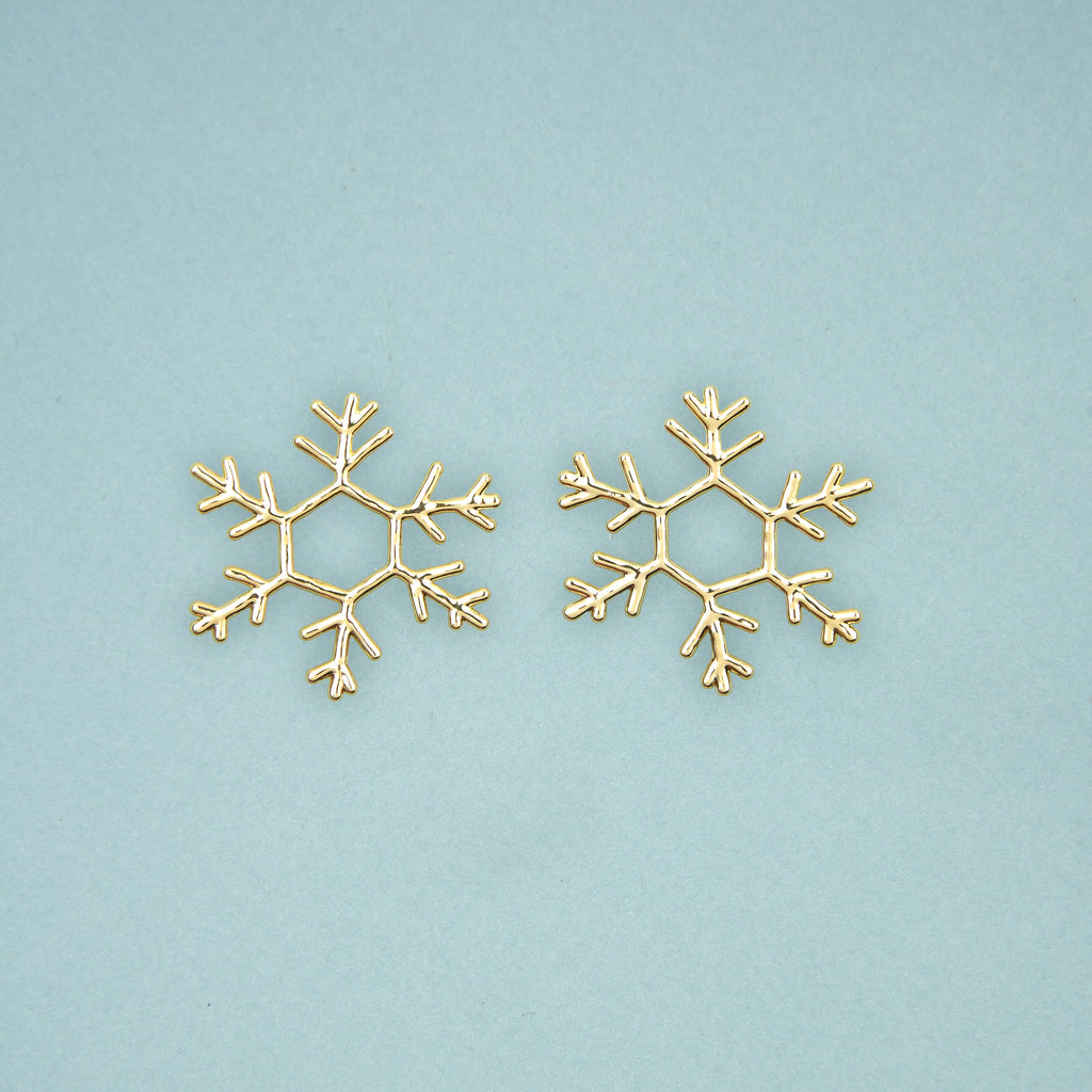L’hiver est l’occasion de décorer toute notre maisonnée, mais aussi nous-même ! Hop, voilà de beaux flocons dorés à mettre à nos oreilles toute la saison. On adore leur forme imparfaite qui les rend à la fois élégantes et régressives.