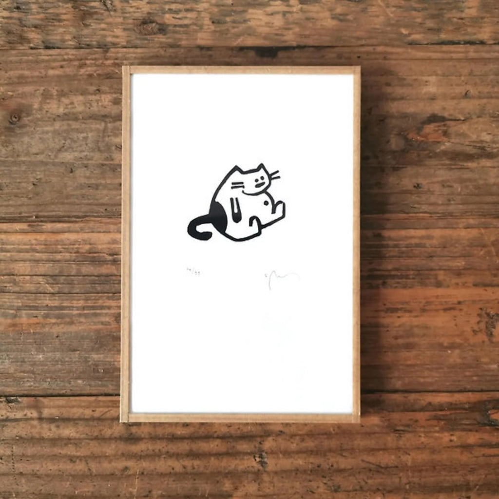 Son travail est minimaliste, la plupart du temps en noir et blanc. Mais il arrive parfois qu’une touche de couleur vienne réveiller l’ensemble (papier ancien, peinture, collage…). Ces gravures sont tirées en petite série et sont toutes réalisées à la main et encadrées par ses soins dans son atelier à Brest.