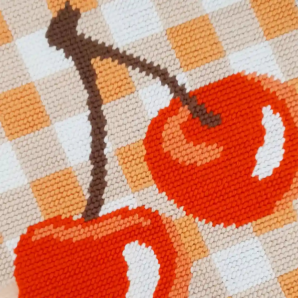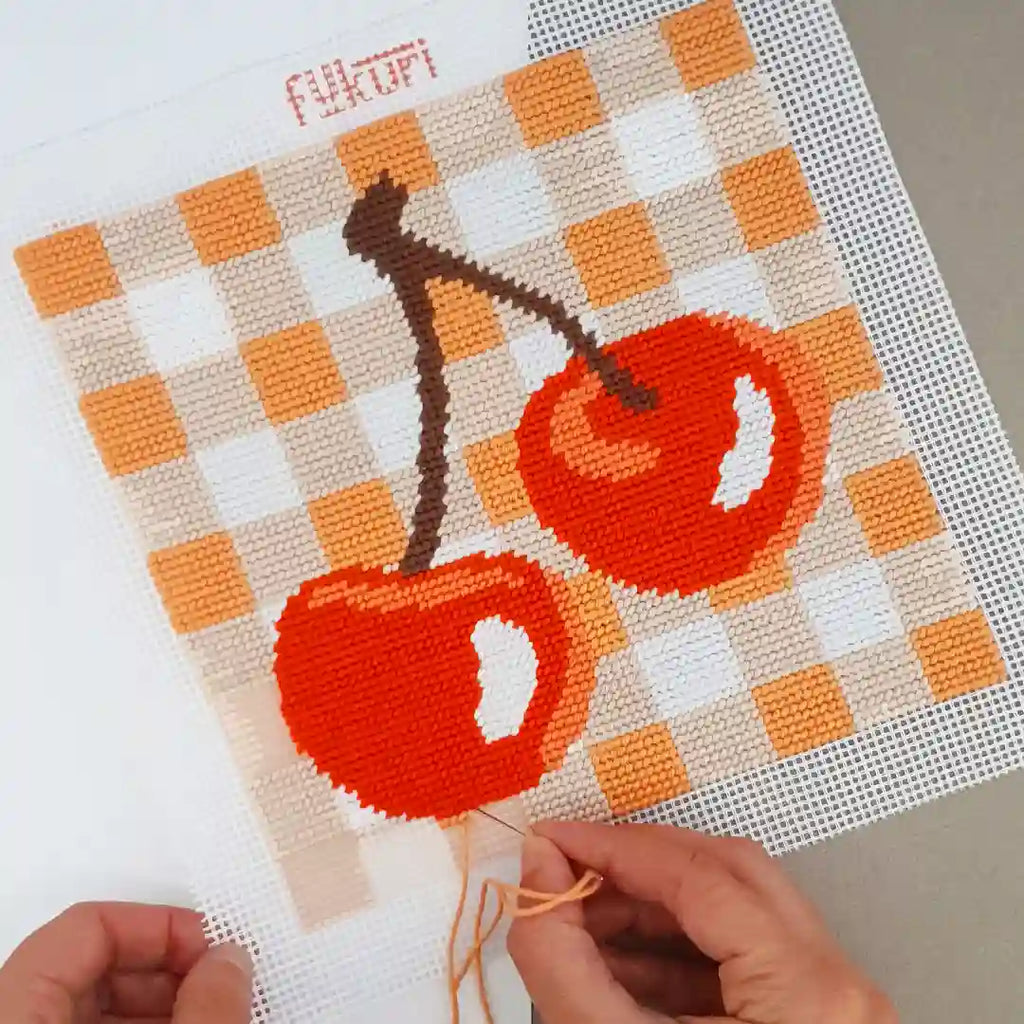 Un canevas alliant modernité et élégance minimaliste. Son motif vichy revisité, agrémenté de cerises aux couleurs estivales, apporte une touche fraîche et dynamique à ta déco. Très facile à réaliser ce kit s'adresse aux débutants et enfants à partir de 10 ans.