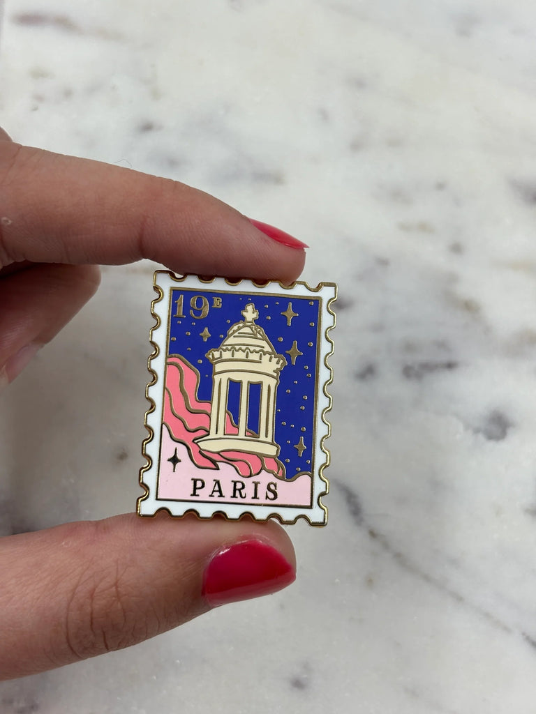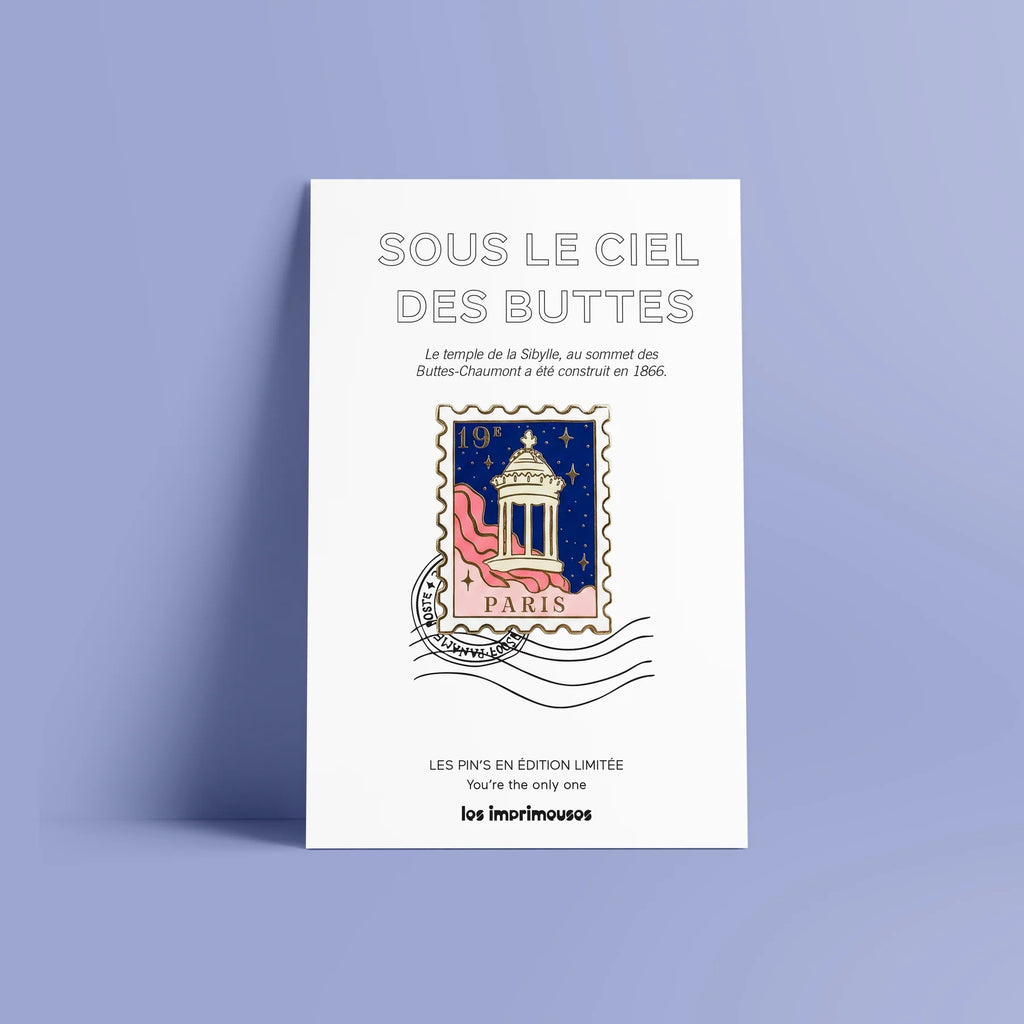 Ce pin’s Timbre Paris 19ème met en scène les Buttes-Chaumont, ce coin de verdure suspendu qui fait respirer la ville.